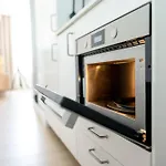 Apartament wyposażony jest w pełnowymiarową kuchnię z czajnikami elektrycznymi, lodówką i piekarnikiem. Goście mogą również zanurzyć się w basenie.